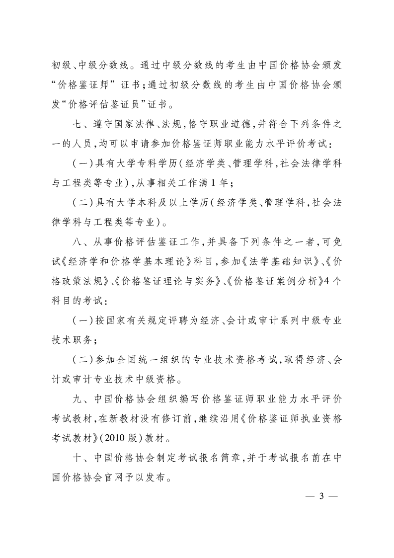 價格鑒證師職業能力水平考試實施辦法