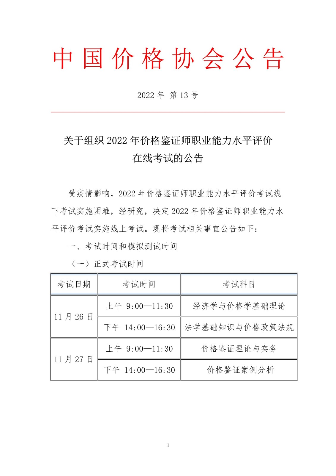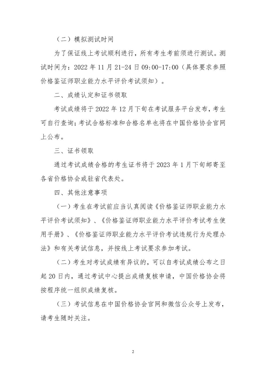 關于組織 2022年價格鑒證師職業能力水平評價在線考試的公告